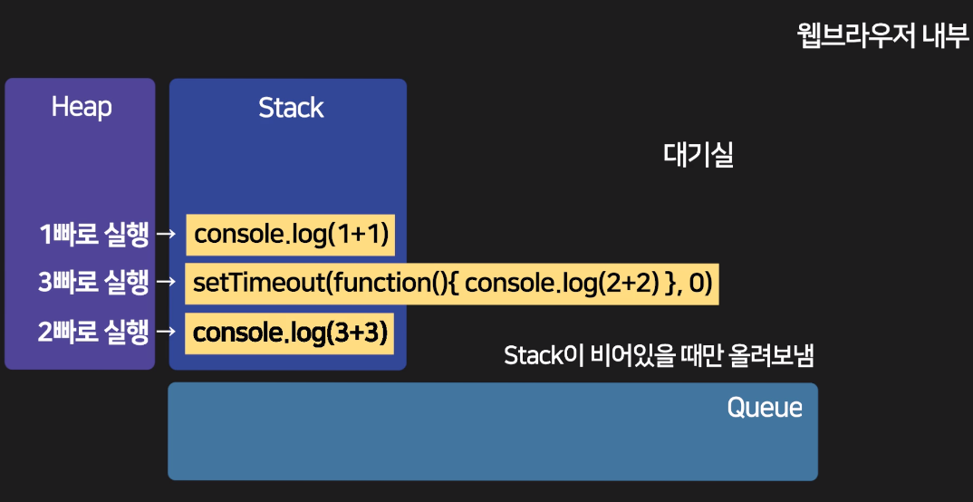 -setTimeout,이벤트리스너,ajax를 쓰면 비동기처리가 됨