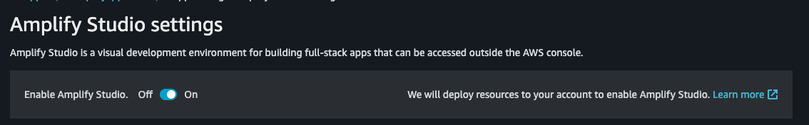 AWS 콘솔을 통해 Amplify Studio backend 사용을 미리 세팅했다면, 아래 명령어를 통해 쉽게 Amplify Studio로 이동가능함