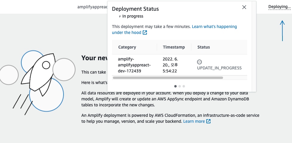 CREATE_IN_PROGRESS amplify-amplifyappreact-dev-172439 AWS::CloudFormation::Stack Mon Jun 20 2022 17:24:40 GMT+0900 (GMT+09:00) User Initiated