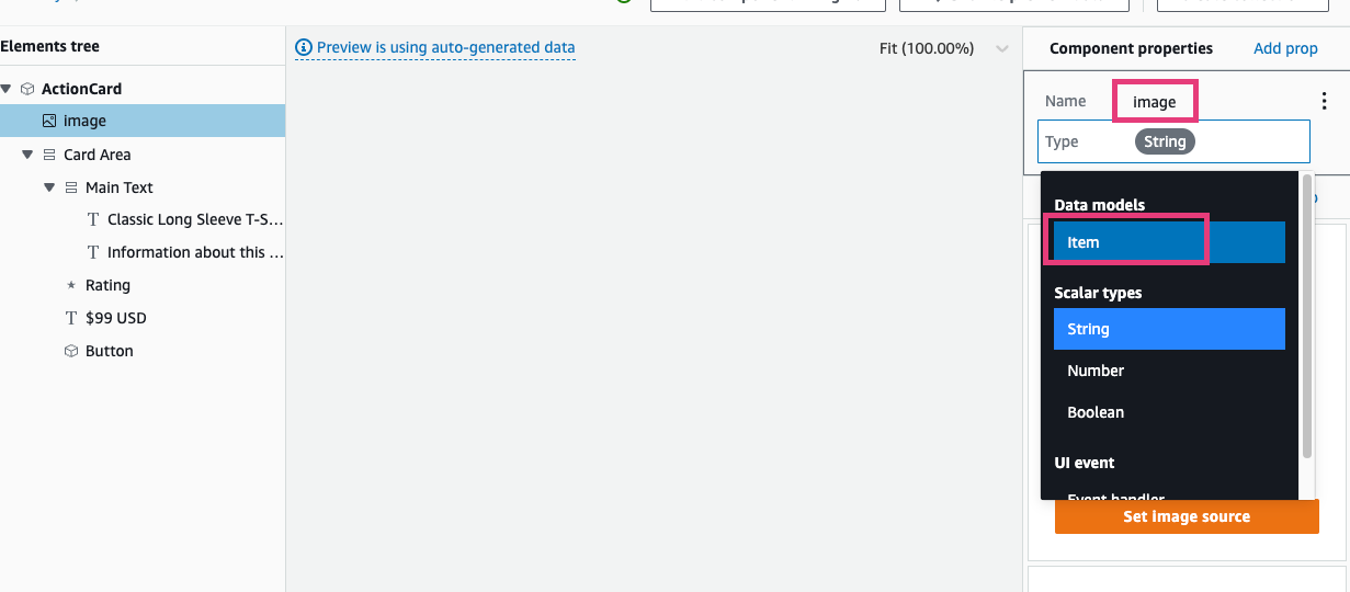 타입은 앞서 생성한 Item 데이터 모델을 선택.