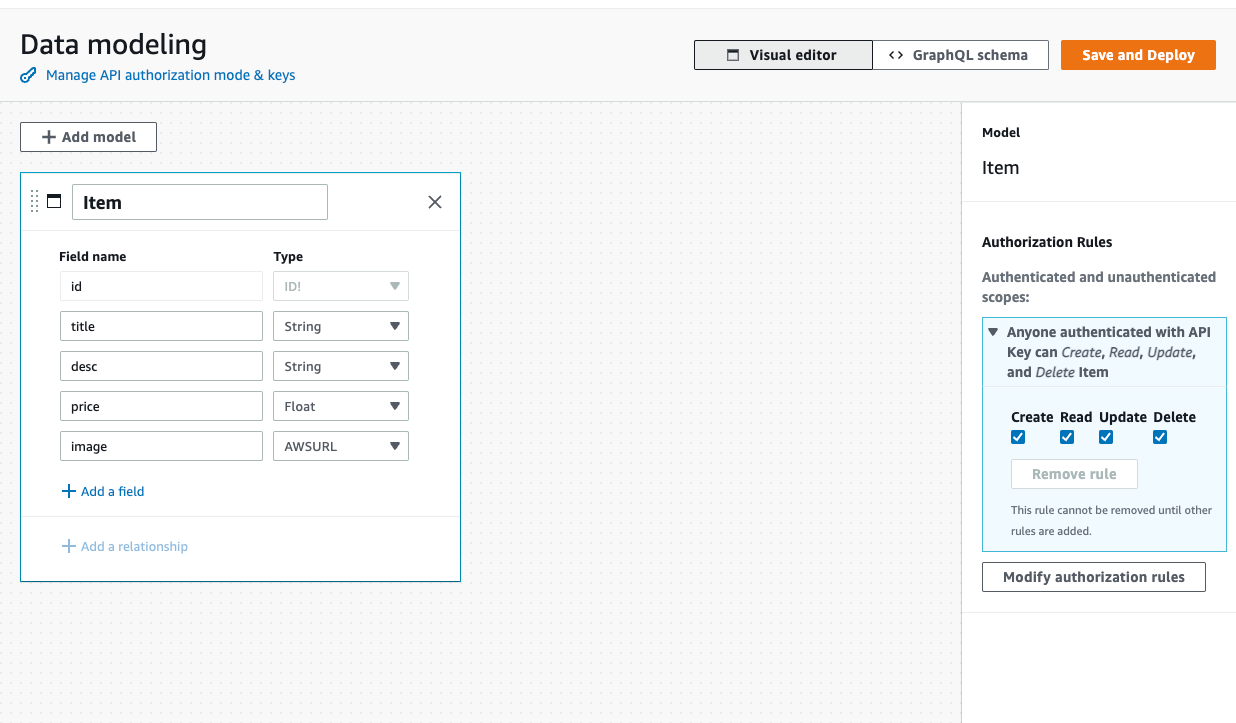 Amplify Studio로 이동하여 데이터 모델을 생성
