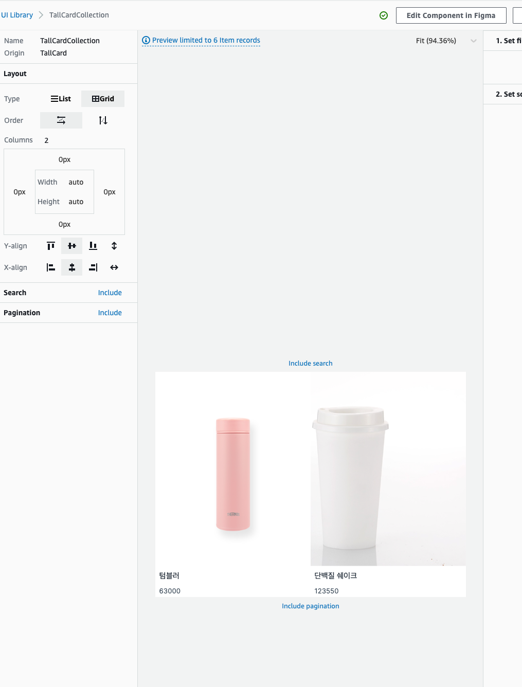 스튜디오에서 생성한 TallCardCollection컴포넌트를 임포트하여 사용