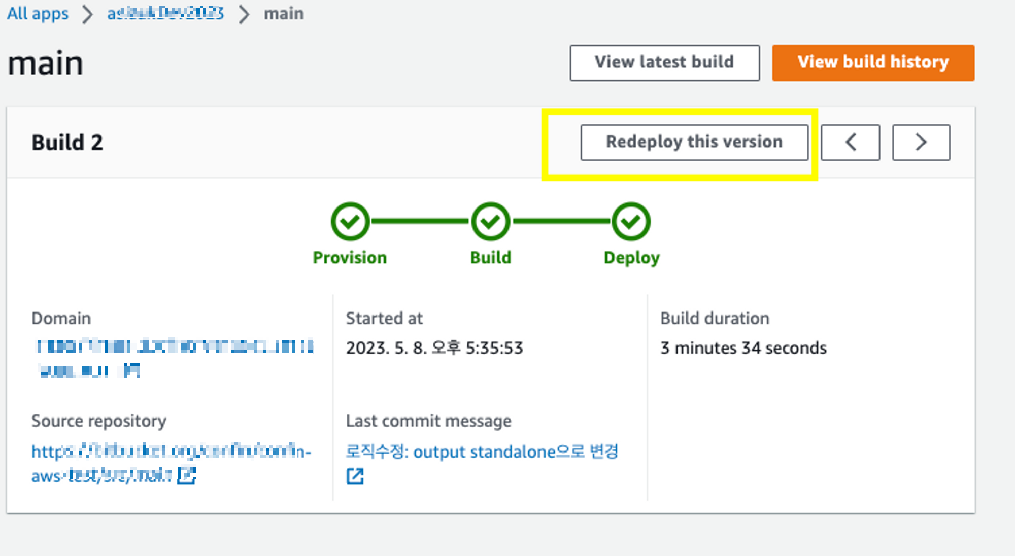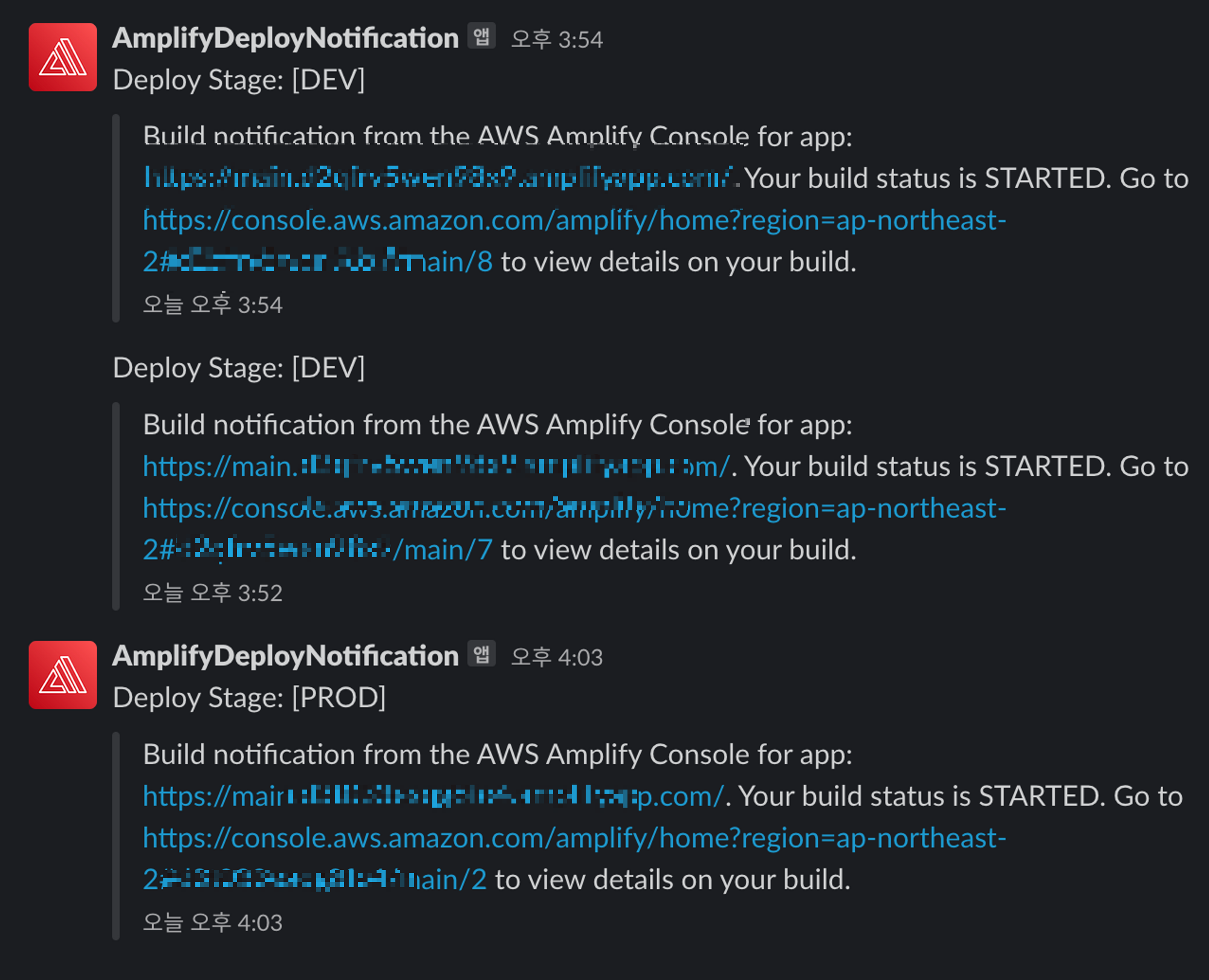 amplify에서 다시 배포를 시도하고 slack의 메시지를 확인하면 된다.