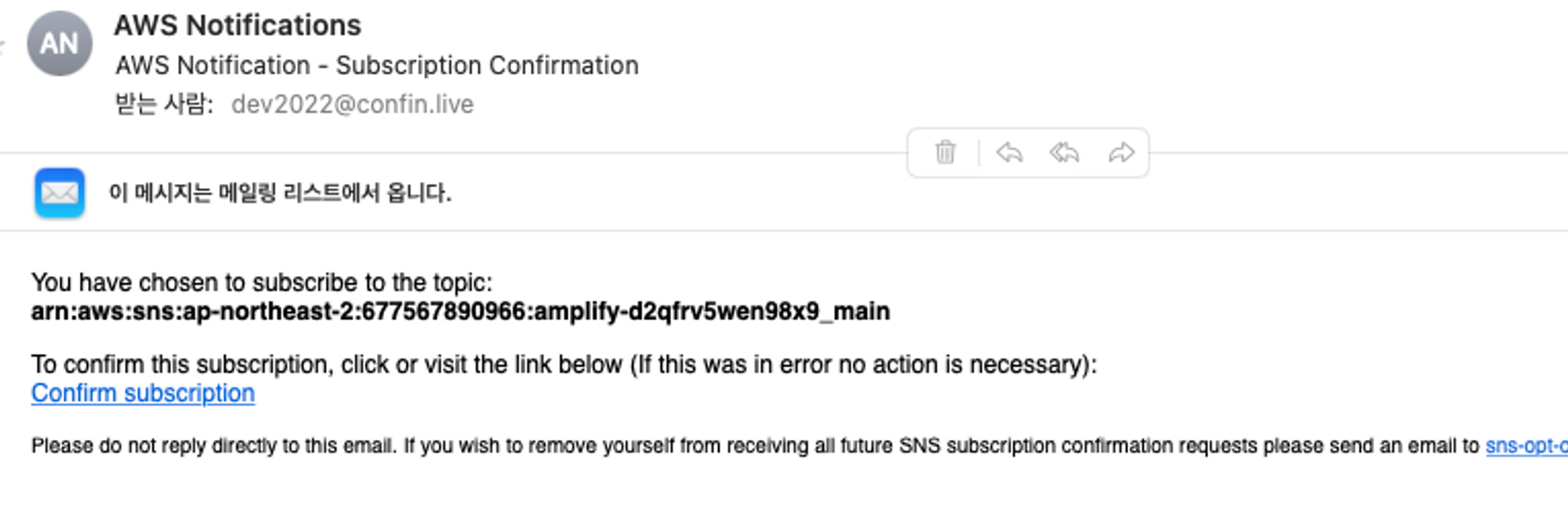 배포될 때 email을 AWS SNS서비스연동하여