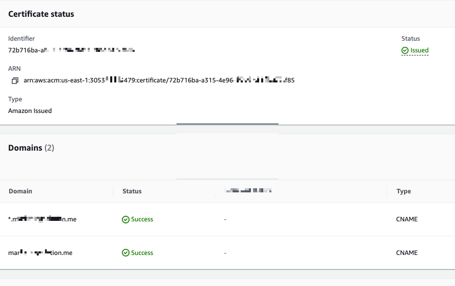 인증서검증까지 약간의 시간이 필요한데 몇 분지 나면 status가 바뀌어 있으면 정상적으로 반영된 것이다.