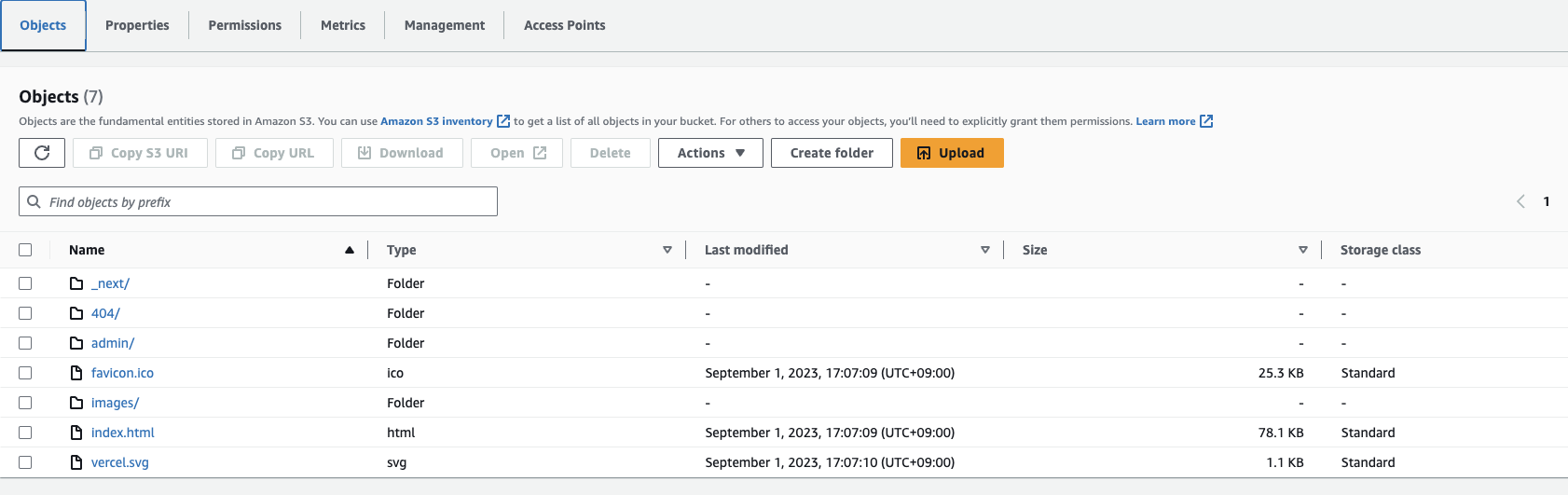 out directory에 build 된 프로젝트를 s3에 배포한다.