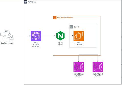 - AWS 프로젝트 Database는 mariadb로 AWS RDS에 dev, production2개 분리배포되어 있고,