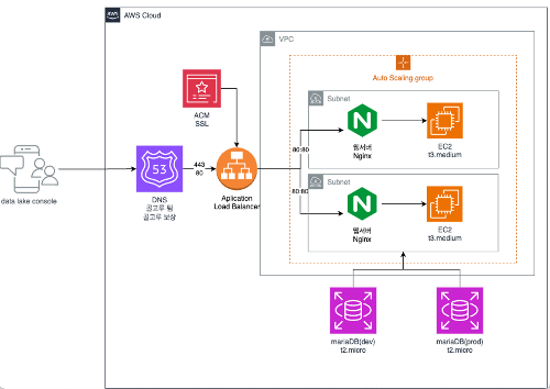 기존 ec2에 설치된 nginx 웹서버가 로드밸런서 역할을 수행하고 있었고 이를 앞단에 alb를 두고 acm을 적용할 경우
